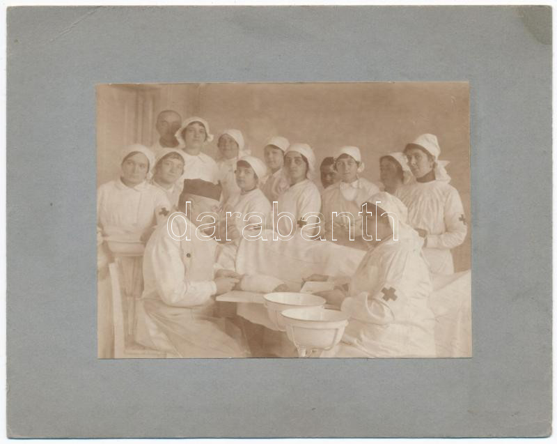 cca 1910 Nővérkék kiképzése sebkötözésre, 8x11 cm, karton 13x16 cm https://www.darabanth.com/hu/224-Gyorsarveres/224.0/Festmeny-mutargy-papirregiseg-egyeb/Foto~33/cca-1910-Noverkek-kikepzese-sebkotozesre-8x11-cm-karton-13x16-cm~II977011