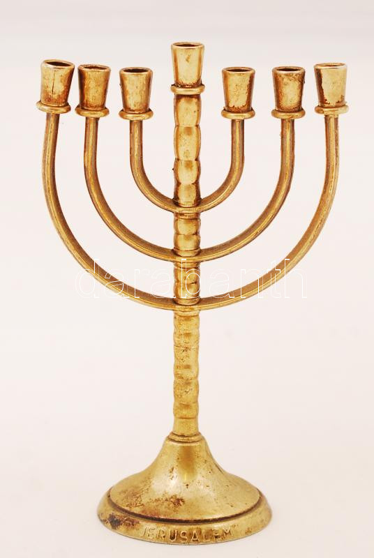 Régi réz menóra, "Jerusalem" felirattal, m: 11,5 cm https://www.darabanth.com/hu/224-Gyorsarveres/224.0/Festmeny-mutargy-papirregiseg-egyeb/Judaika~39/Regi-rez-menora-Jerusalem-felirattal-m-11-5-cm~II976113
