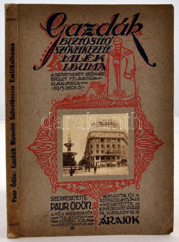 Paur Ödön (szerk.): Gazdák biztosító szövetkezete emlék albuma. A szövetkezeti székház épület felavatása alkalmára 1923. decz.6. Budapest, 1914, Pátria. Nagyon sok képpel illusztrált. Kiadói papír kötésben, korának megfelelő állapotban.
