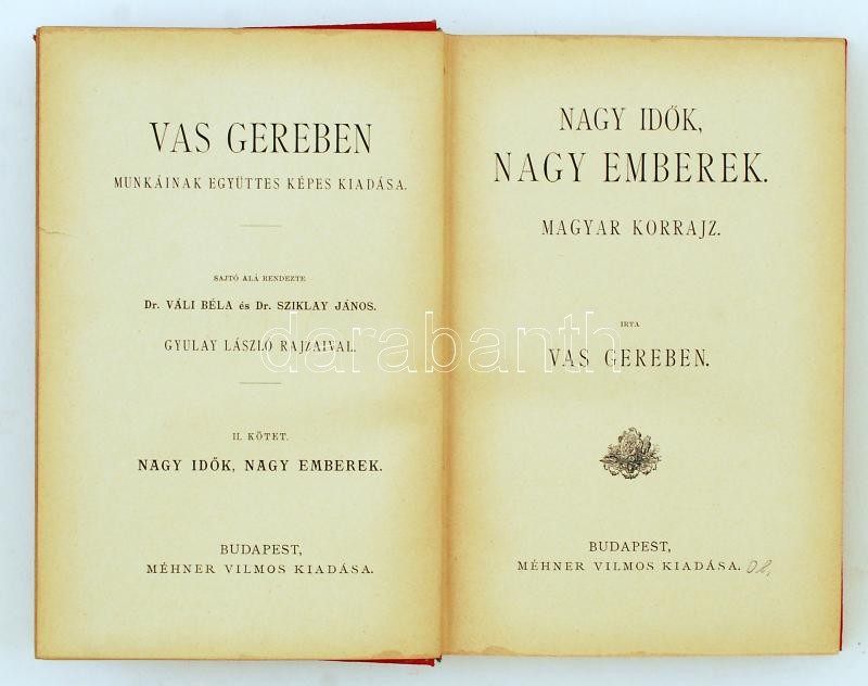 Vas Gereben munkáinak együttes kiadása. Sajtó alá rendezte Dr. Váli Béla és Dr. Sziklay János. Gyulai László rajzaival 10 kötetben. Budapest, Méhner Vilmos. Kiadói aranyozott gerincű egészvászon kötés, festett lapszélek, illusztrált, jó állapotban.