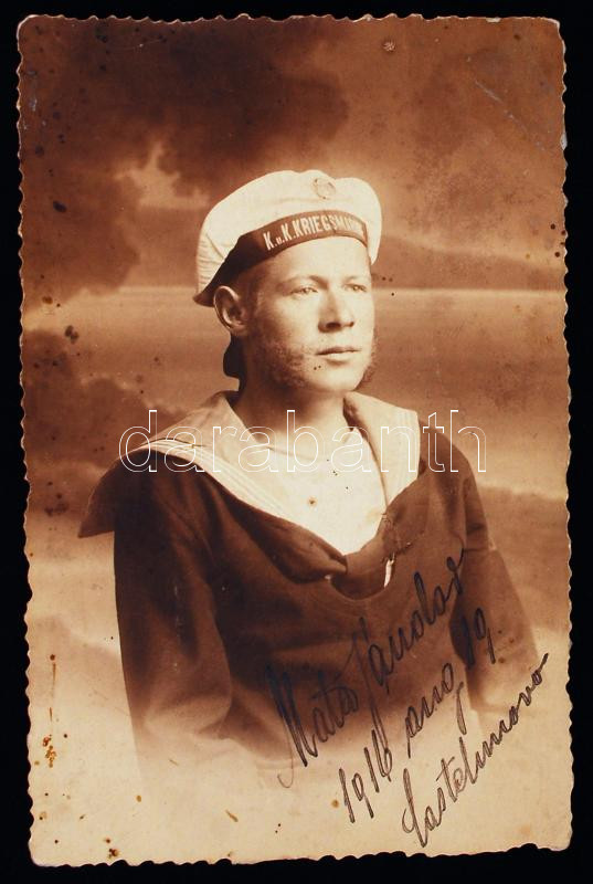 1916 Hungarian... https://www.darabanth.com/hu/224-Gyorsarveres/224.0/Festmeny-mutargy-papirregiseg-egyeb/Militaria~3/1916-Kuk-Kriegsmarine-magyar-matroza-13-5C3978-5-cm--3Cbr3E1916-Hungarian-sailor-of-the-Kriegsma~II980451