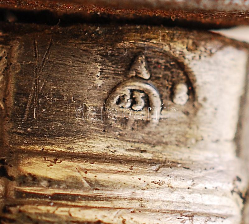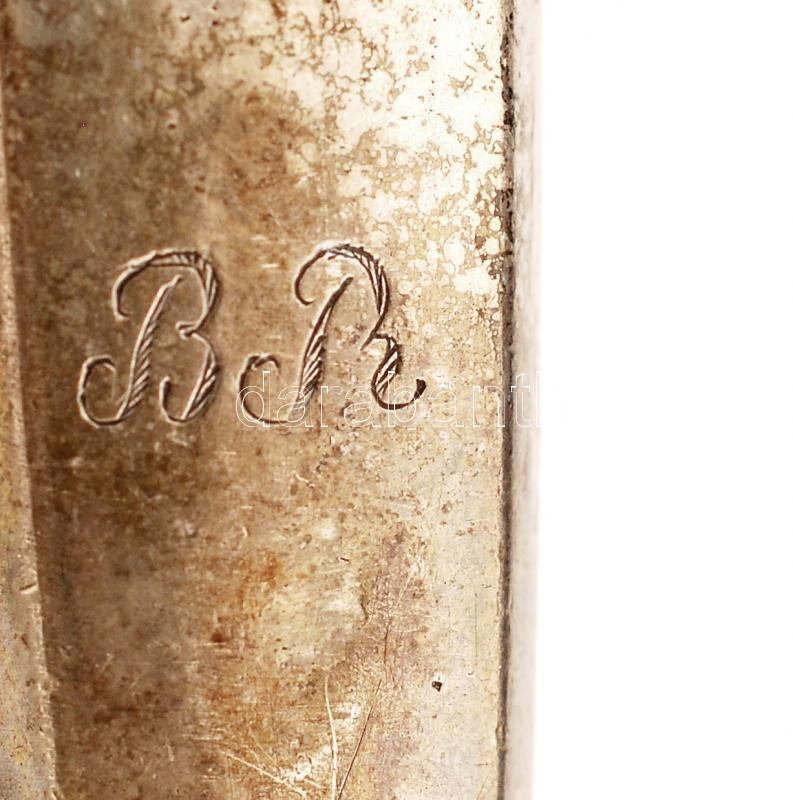 Leírás: Ezüst (Ag.) nyelű villa és kés, két különböző monogrammal, megviselt állapotban, jelzett, br. 185 g