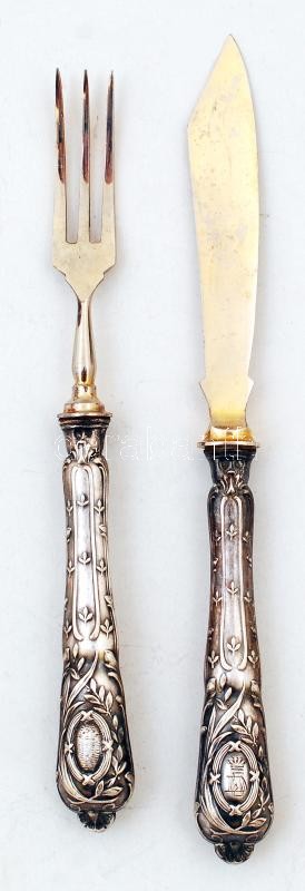 Leírás: Ezüst(Ag) nyelű süteményes szett, 5 db villa, 6 db kés, jelzett, br: 318 g