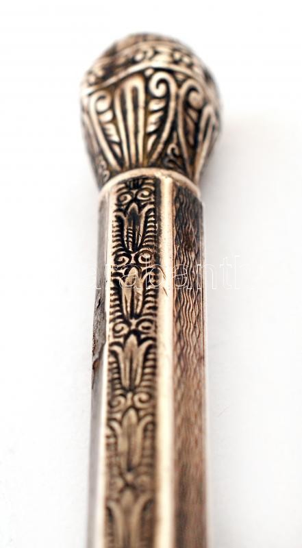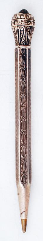 Leírás: Gazdagon díszített ezüst (Ag.) régi töltőceruza, állítható heggyel, cserélhető grafitbetéttel, apró hibákkal, jelzés nélkül, h: 10,5 cm, br. 15 g