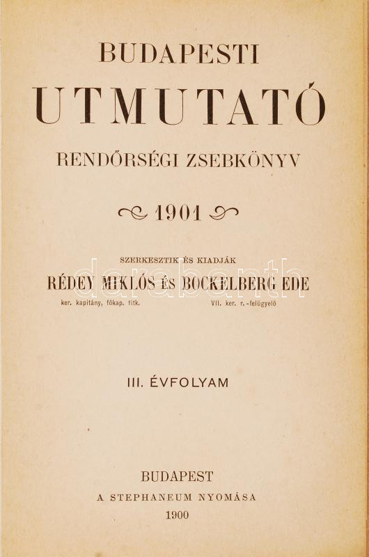 1900 Rédey Miklós, Bockelberg Ede (szerk.): Budapesti útmutató, Rendőr... https://www.darabanth.com/hu/224-Gyorsarveres/224.0/Festmeny-mutargy-papirregiseg-egyeb/Nyomtatvanyok~6/1900-Redey-Miklos-Bockelberg-Ede-szerk-Budapesti-utmutato-Rendorsegi-Zsebkonyv-egeszv~II961825
