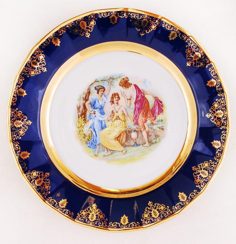 Leírás: Cseh aranyozott porcelán tányér, matricás, hibátlan, jelzett, d: 25 cm