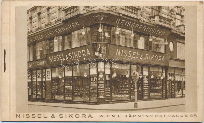 Leírás: Vienna, Wien I. Kartnerstrasse 45. Nissel & Sikora postcard bookled with 3 postcards