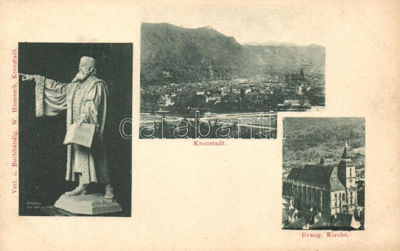 Leírás: Brassó, Kronstadt; Evangélikus templom, szobor / church, statue