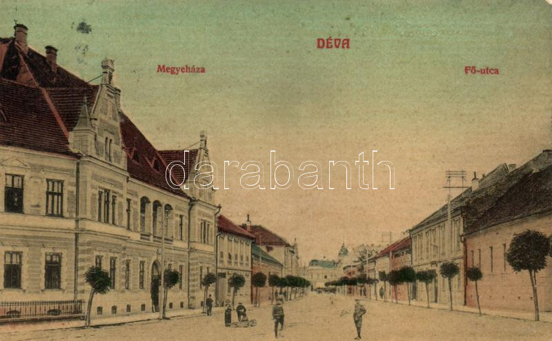 Déva, megyeháza, Fő utca / county hall, main street https://www.darabanth.com/hu/224-Gyorsarveres/224.0/Kepeslapok/Erdely~10007/Deva-megyehaza-Fo-utca-county-hall-main-street~II977975