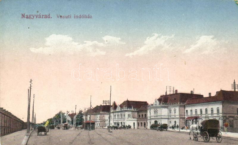 Nagyvárad, vasúti indóház / railway station (Rb) https://www.darabanth.com/hu/224-Gyorsarveres/224.0/Kepeslapok/Erdely~10007/Nagyvarad-vasuti-indohaz-railway-station-Rb~II978626