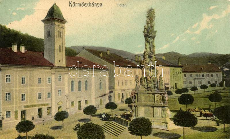 Körmöcbánya, Főtér, Ritter Lipót üzlete és kiadása / square, monument,... https://www.darabanth.com/hu/224-Gyorsarveres/224.0/Kepeslapok/Felvidek~10008/Kormocbanya-Foter-Ritter-Lipot-uzlete-es-kiadasa-square-monument-shop~II980177