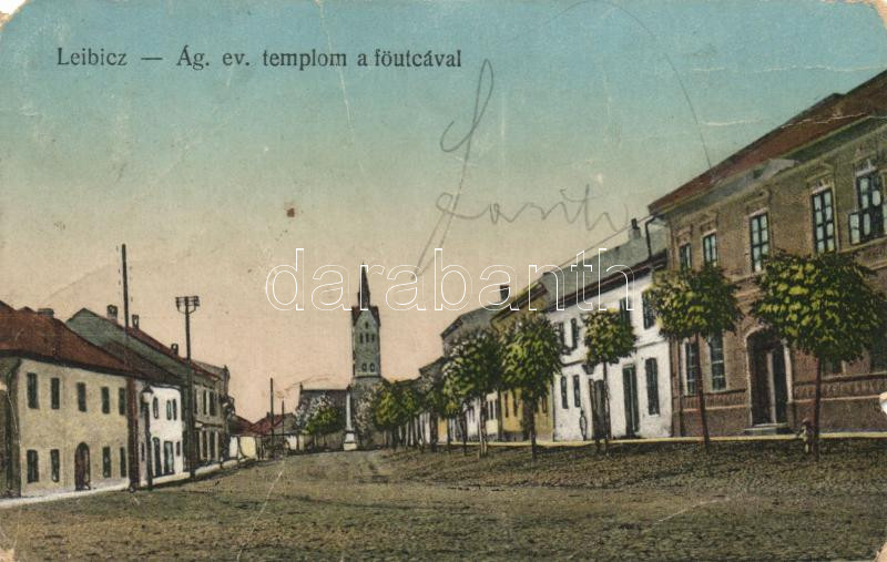 Leibic, Ágostoni evangélikus templom, Fő utca / church, main street (E... https://www.darabanth.com/hu/224-Gyorsarveres/224.0/Kepeslapok/Felvidek~10008/Leibic-Agostoni-evangelikus-templom-Fo-utca-church-main-street-EM~II980237