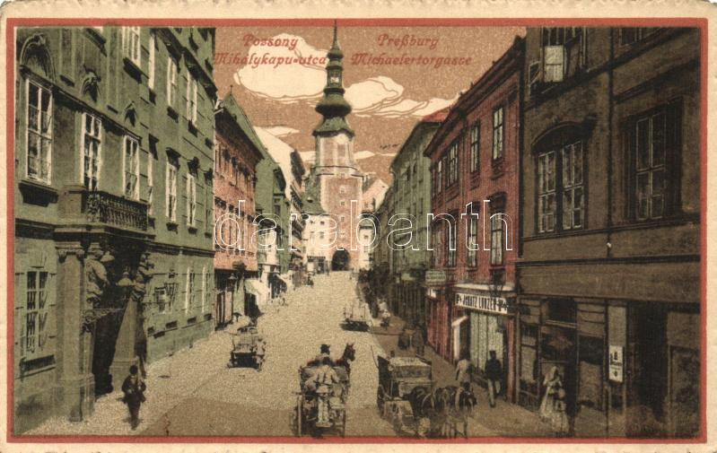 Pozsony, Mihálykapu utca, Lunzer Ignác üzlete / street, shop https://www.darabanth.com/hu/224-Gyorsarveres/224.0/Kepeslapok/Felvidek~10008/Pozsony-Mihalykapu-utca-Lunzer-Ignac-uzlete-street-shop~II978725