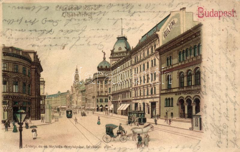Budapest VII. Erzsébet körút, Hotel Rémi, Magyar Királyi Technológia l... https://www.darabanth.com/hu/224-Gyorsarveres/224.0/Kepeslapok/Magyarorszag~10006/Budapest-VII-Erzsebet-korut-Hotel-Remi-Magyar-Kiralyi-Technologia-litho-fa~II979764