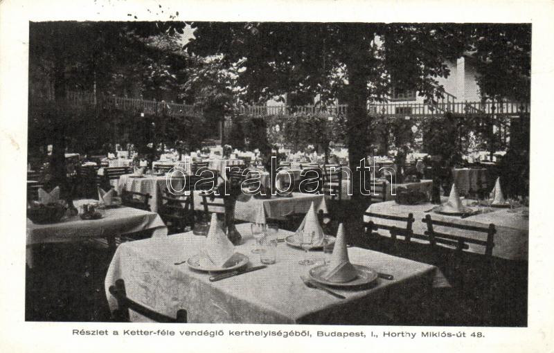 Budapest XI. Ketter-féle vendéglő, kerthelyiség; Horthy Miklós út 48. https://www.darabanth.com/hu/224-Gyorsarveres/224.0/Kepeslapok/Magyarorszag~10006/Budapest-XI-Ketter-fele-vendeglo-kerthelyiseg-Horthy-Miklos-ut-48~II978263