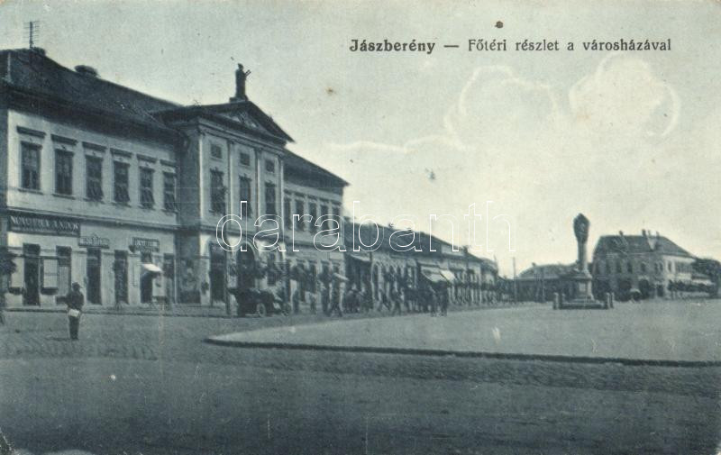 Leírás: Jászberény Főtér, városháza, Novotha Andor üzlete és saját kiadása (EK)