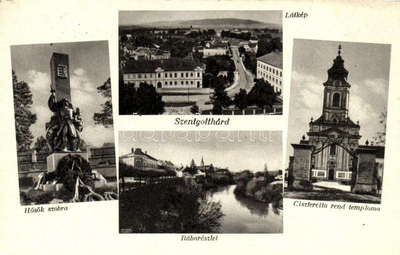 Szentgotthárd, Hősök szobra, Rába, Cisztercita rend temploma https://www.darabanth.com/hu/224-Gyorsarveres/224.0/Kepeslapok/Magyarorszag~10006/Szentgotthard-Hosok-szobra-Raba-Cisztercita-rend-temploma~II980369