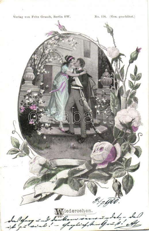 Wiedersehen / Romantic couple kissing, Fritz Grandt No. 138. floral (E... https://www.darabanth.com/hu/224-Gyorsarveres/224.0/Kepeslapok/Muvesz~30425/Wiedersehen-Romantic-couple-kissing-Fritz-Grandt-No-138-floral-EK~II983043