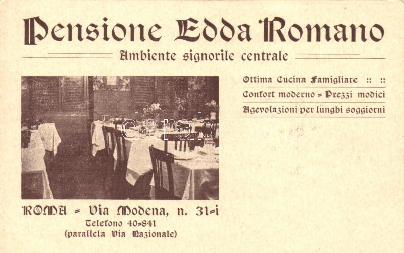 Leírás: Rome, Roma; Pensione Edda Romano / restaurant interior, advertisement