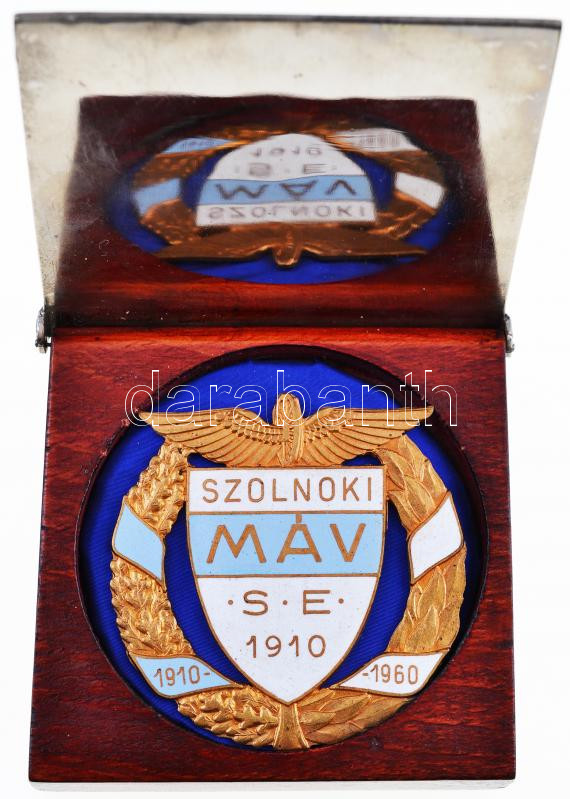 1960. "Szolnoki MÁV S.E. (Sport Egyesület) 1910-1960" aranyozott, zomá... https://www.darabanth.com/hu/224-Gyorsarveres/224.0/Numizmatika/Falerisztika-Kituntetesek-jelvenyek~20016/1960-Szolnoki-MAV-SE-Sport-Egyesulet-1910-1960-aranyozott-zomancozott-fem-jelveny-tokba~II978974