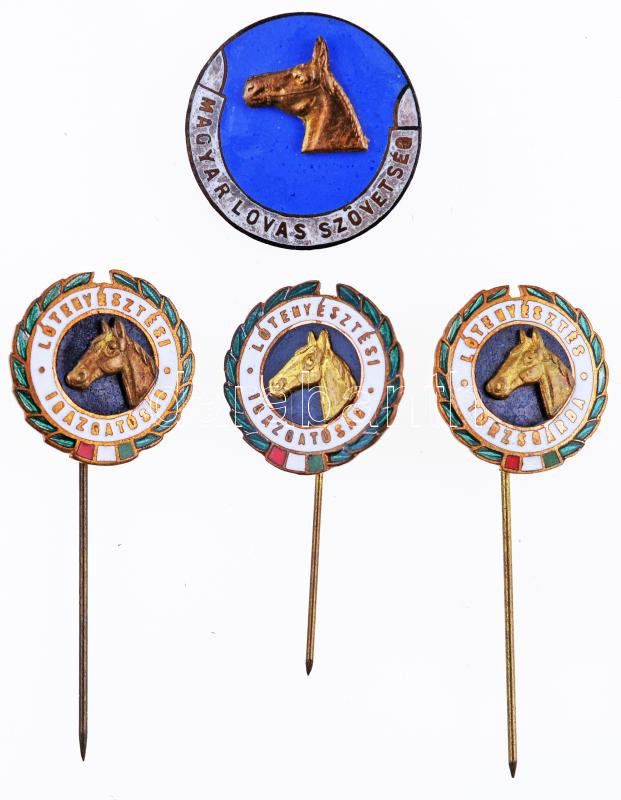 Leírás: DN "Lótenyésztési Igazgatóság" (3x) + "Magyar Lovas Szövetség" zománcozott jelvények T:2