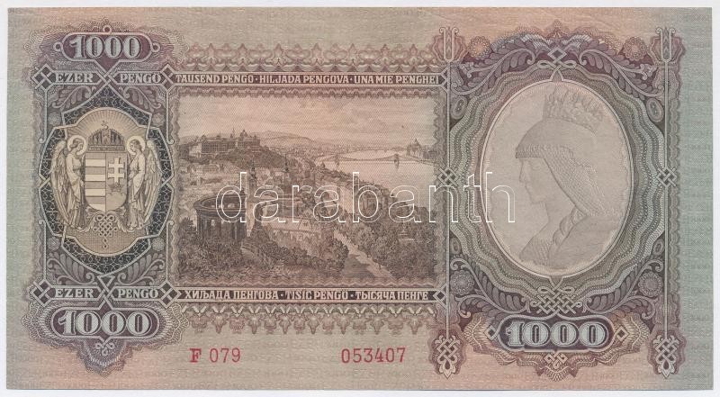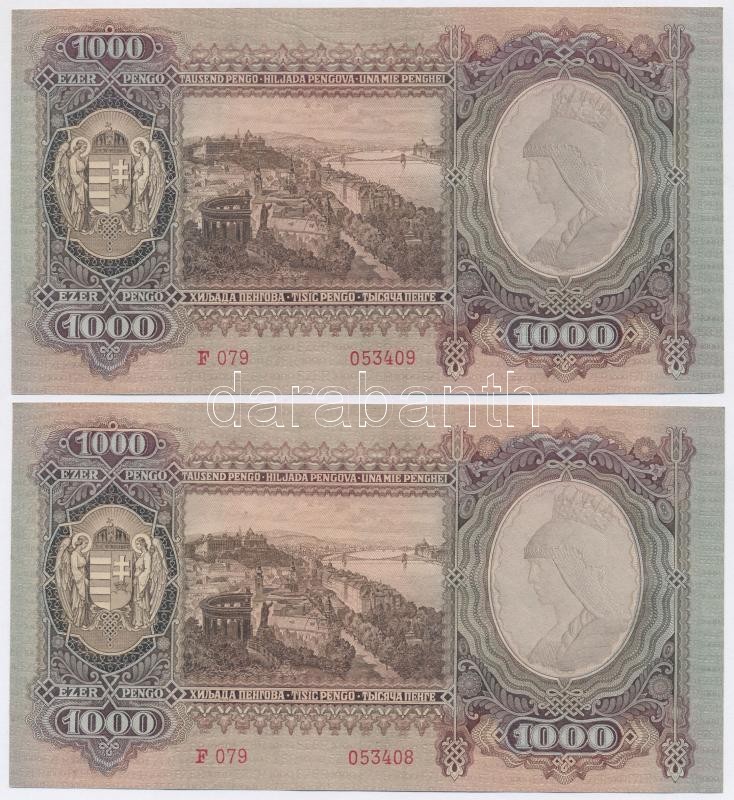 Leírás: 1943. 1000P (3x) sorszámkövetők, nyomdai papírráncokkal T:I