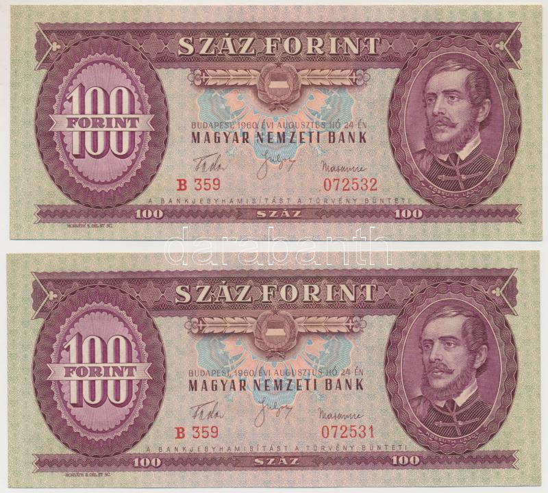 1960. 100Ft (2x) sorszámkövetők T:I https://www.darabanth.com/hu/224-Gyorsarveres/224.0/Numizmatika/Magyar-bankjegyek~20007/1960-100Ft-2x-sorszamkovetok-TI~II981710