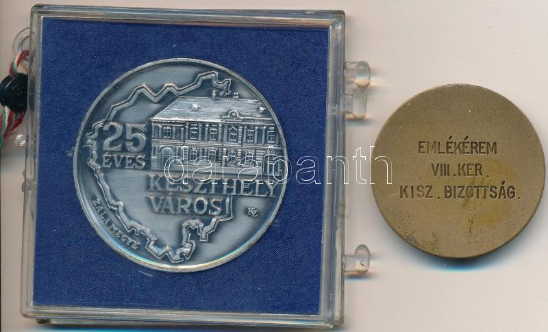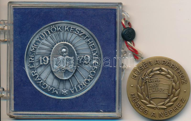 Leírás: 1979. "MÉE Keszthely / 25 éves Keszthely város" fém emlékérem sérült plombált ÁPV tokban + ~1970. "KISZ - Hűség a párthoz, hűség a néphez / Emlékérem VIII. Kerületi KISZ Bizottság" Br emlékérem (35mm) T:1-,2