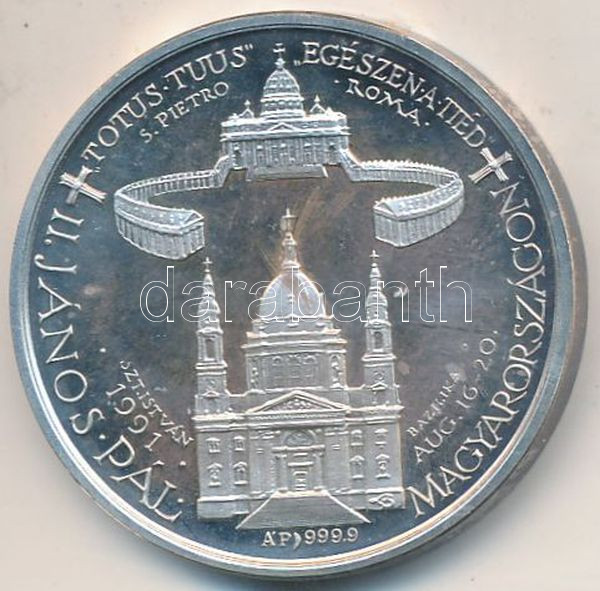 1991. "Őszentsége II. János Pál Magyarországon" Ag emlékérem (31,2g/0.... https://www.darabanth.com/hu/224-Gyorsarveres/224.0/Numizmatika/Magyar-emlekveretek~20009/1991-Oszentsege-II-Janos-Pal-Magyarorszagon-Ag-emlekerem-31-2g099939mm-T2-PP~II979593