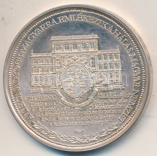 Bozó Gyula (1913-2004) / Szabó Géza (1939-) 1991. "Gr. Széchenyi István / A legnagyobb magyarra emlékezik a hálás magyar nemzet" Ag emlékérem (36.4g/0.925/42,5mm) T:2 (PP)