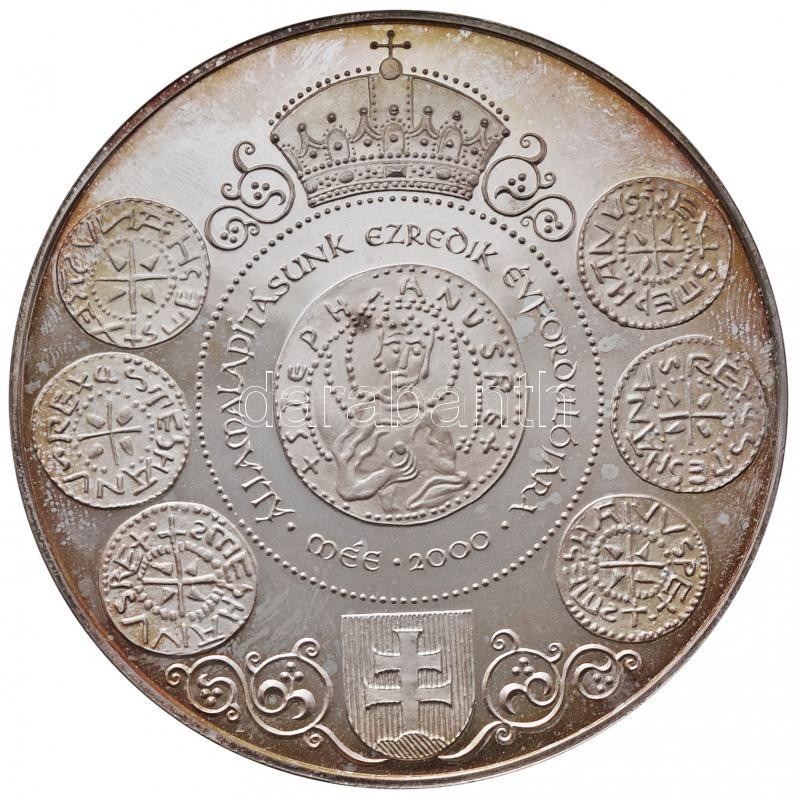 Csóka Zsuzsanna (1962-) / Király Csaba / Szabó Géza Szabó Géza (1939-) 2000. "MÉE Budapest - Államalapításunk ezredik évfordulójára" Ag emlékérem (171,5g/0.925/80mm) T:2 (PP)