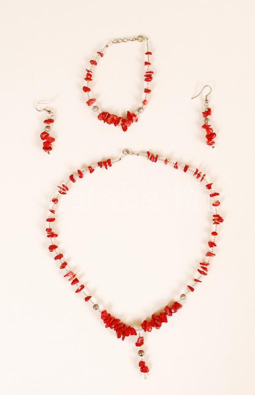Korall együttes: nyakék, karkötő, fülbevaló pár /