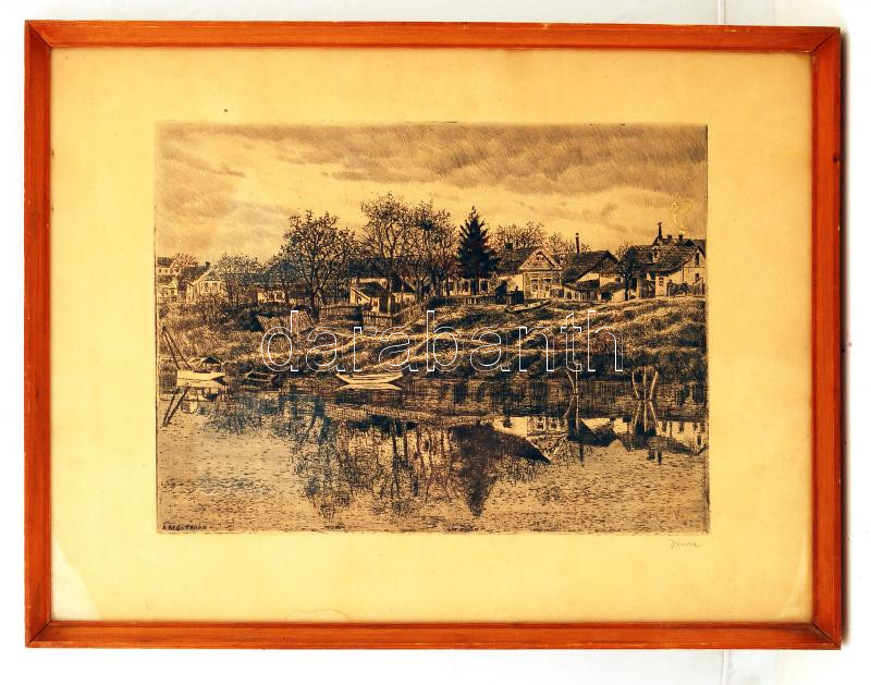 Leírás: Imre István (1918-1983): A régi Tabán. Rézkarc, papír, jelzett, üvegezett fa keretben, 39,5×29 cm