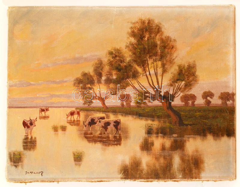 Jakab Károly (1904-1994): Itatás. Olaj, vászon, jelzett, 60×80 cm https://www.darabanth.com/hu/225-Gyorsarveres/225.0/Festmeny-mutargy-papirregiseg-egyeb/Festmenyek-es-grafikak~10/Jakab-Karoly-1904-1994-Itatas-Olaj-vaszon-jelzett-60C39780-cm~II967086