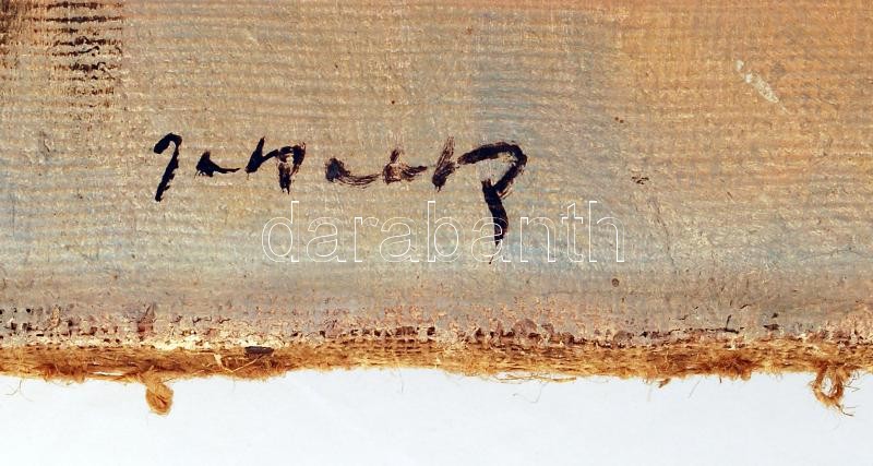 Leírás: Jakab Károly (1904-1994): Itatás. Olaj, vászon, jelzett, 60×80 cm