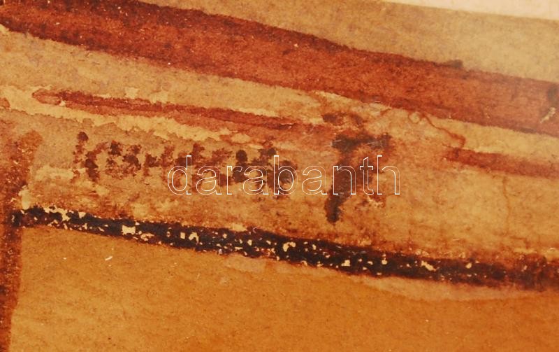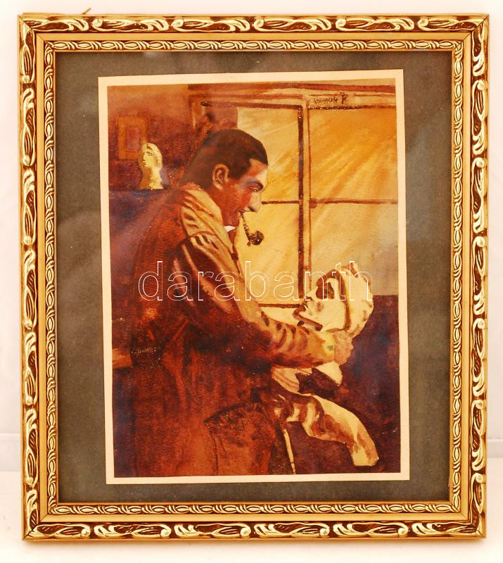 Leírás: Kümmerle jelzéssel: Merengés, akvarell, papír, üvegezett, díszesen faragott fa keretben, 23×17 cm