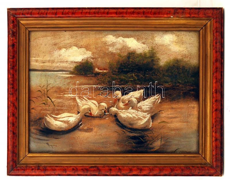 Leírás: Magney jelzéssel: Kacsák. Olaj, karton, keretben, 35×48 cm
