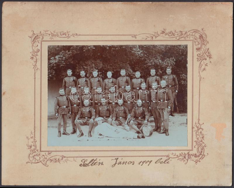 1909 Régi fénykép: Katonazenészek csoportja, paszpartuban. 11x15cm https://www.darabanth.com/hu/225-Gyorsarveres/225.0/Festmeny-mutargy-papirregiseg-egyeb/Foto~40/1909-Regi-fenykep-Katonazeneszek-csoportja-paszpartuban-11x15cm~II988572