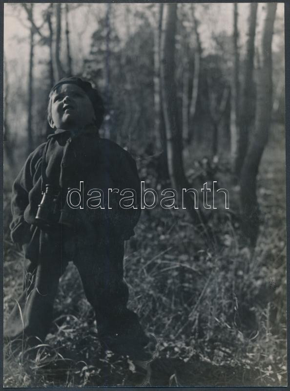 Leírás: 1933 Makkos Hetyey Pál (Budatétény): Madárfészkek kutatója, aláírt, pecséttel jelzett vintage fotóművészeti alkotás, 23x17 cm