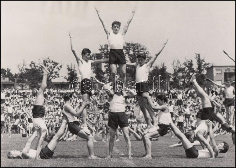 cca 1950 Sportünnepség, tornászok gúlaépítő gyakorlata, jelzetlen fény... https://www.darabanth.com/hu/225-Gyorsarveres/225.0/Festmeny-mutargy-papirregiseg-egyeb/Foto~40/cca-1950-Sportunnepseg-tornaszok-gulaepito-gyakorlata-jelzetlen-fenykep-Tiszavolgyi-Joz~II986672