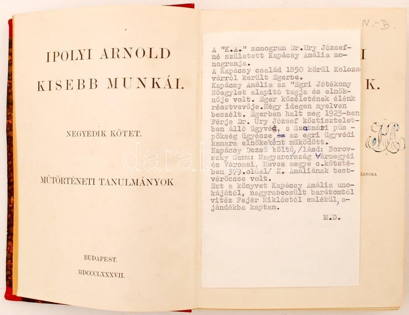 Ipolyi Arnold: Műtörténeti tanulmányok. Budapest, 1887. Franklin. 566p... https://www.darabanth.com/hu/225-Gyorsarveres/225.0/Festmeny-mutargy-papirregiseg-egyeb/Konyvek-Epiteszet-muveszet~14/Ipolyi-Arnold-Mutorteneti-tanulmanyok-Budapest-1887-Franklin-566p-Korabeli-felvaszon-ko~II968102