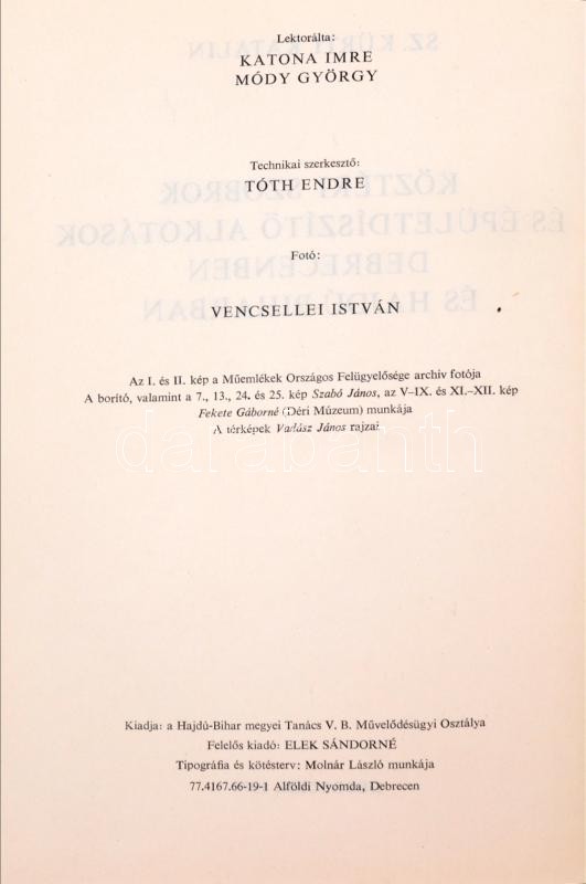Sz. Kürti Katalin: Köztéri szobrok és épületdíszítő alkotások Debrecenben és Hajdú-Biharban. Debrecen, 1977, Hajdú-Bihar megyei Tanács V. B. Művelődési Osztálya. Aranyozott kartonált papírkötésben, papír védőborítóval, jó állapotban.
