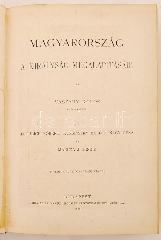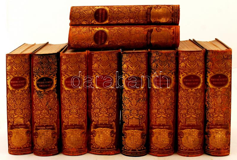A magyar nemzet története I-X. köt. Szerk. Szilágyi Sándor. Bp., 1895-1897, Athenaeum. Komplett. Kiadói dombornyomott, aranyozott egészbőr kötésben, illusztrációkkal, köztük metszetekkel, lithográfiákkal. Kötések kissé kopottak, de jó állapotban
