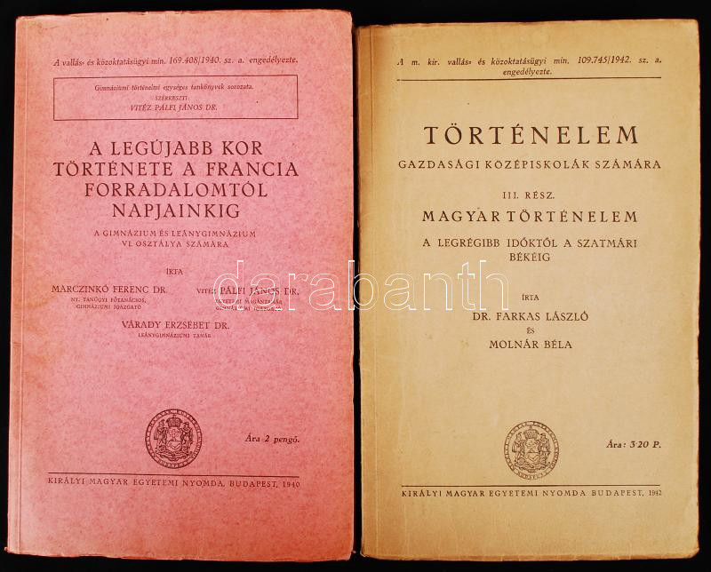 Marczinkó ferenc dr.- Vitéz Pálfi János dr.- Várady Erzsébet dr.:A legújabb kor története a francia forradalomtól napjainkig. Bp., 1940, Királyi Magyar Egyetemi Nyomda. Papír kötésben.