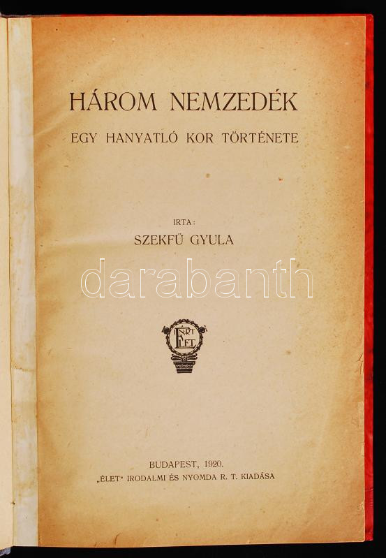 Szekfű Gyula: Három nemzedék. Egy hanyatló kor története. Bp., 1920, &... https://www.darabanth.com/hu/225-Gyorsarveres/225.0/Festmeny-mutargy-papirregiseg-egyeb/Konyvek-Tortenelem~6/Szekfu-Gyula-Harom-nemzedek-Egy-hanyatlo-kor-tortenete-Bp-1920-Elet-Irodalmi-es-Nyom~II943842