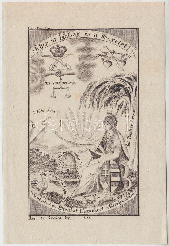 1834 Kovács Gy. jelzéssel: Éljen az igazság és a szeretet! Metszet, pa... https://www.darabanth.com/hu/225-Gyorsarveres/225.0/Festmeny-mutargy-papirregiseg-egyeb/Metszetek~16/1834-Kovacs-Gy-jelzessel-Eljen-az-igazsag-es-a-szeretet-Metszet-papir-jelzett-8x13-cm~II987858