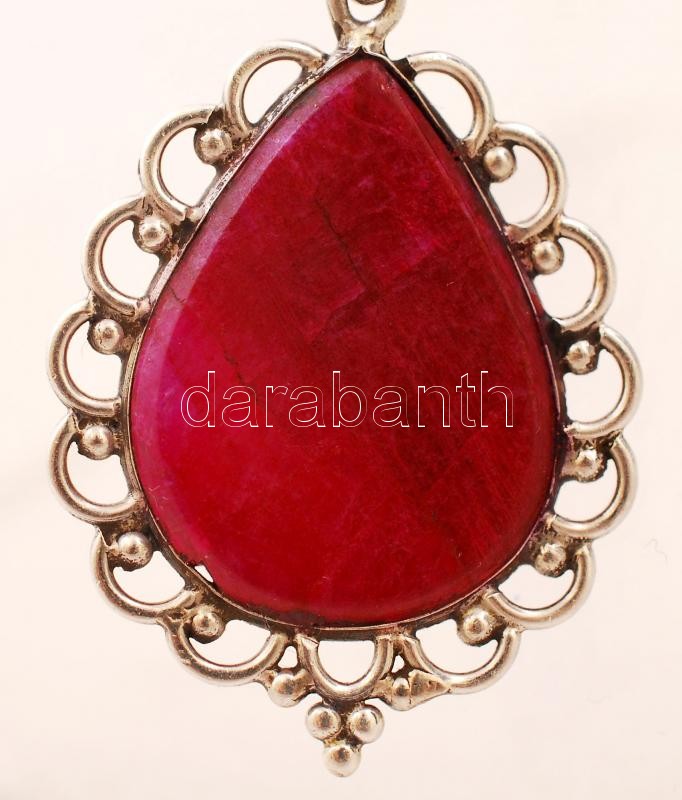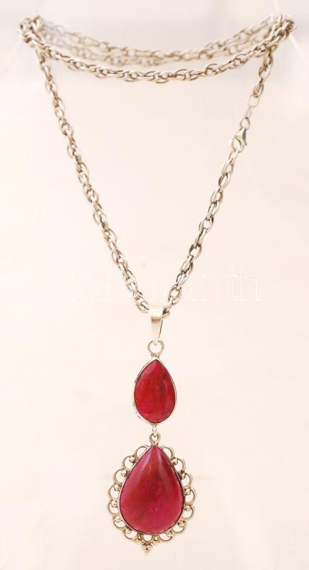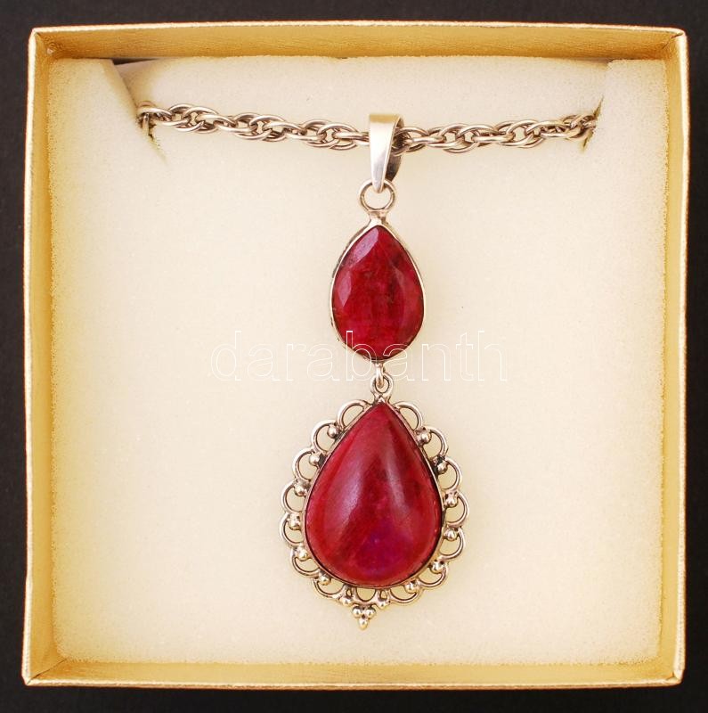 Leírás: Ezüst(Ag) nyaklánc rubinvörös kövekkel díszített medállal, jelzett, br: 24,2 g