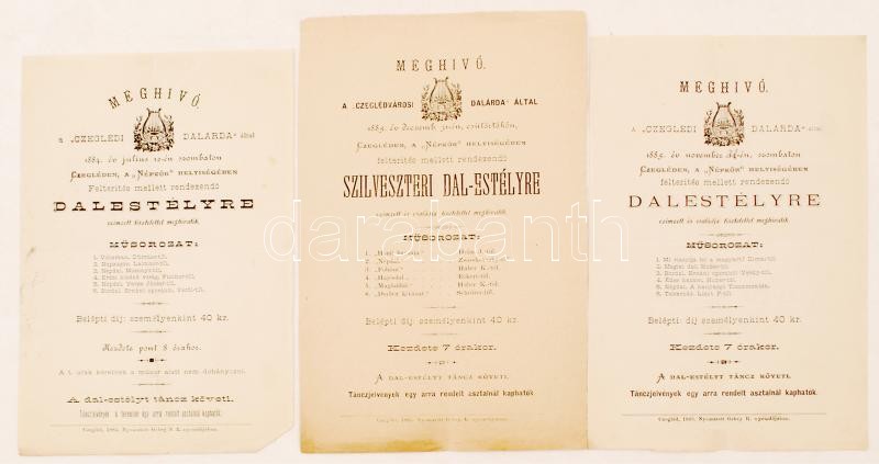 1882-1885 A ceglédi, a nagykőrösi ás az öcsödi dalárda dalestélyekre s... https://www.darabanth.com/hu/225-Gyorsarveres/225.0/Festmeny-mutargy-papirregiseg-egyeb/Nyomtatvanyok~4/1882-1885-A-cegledi-a-nagykorosi-as-az-ocsodi-dalarda-dalestelyekre-szolo-12-db-meghivo~II987712