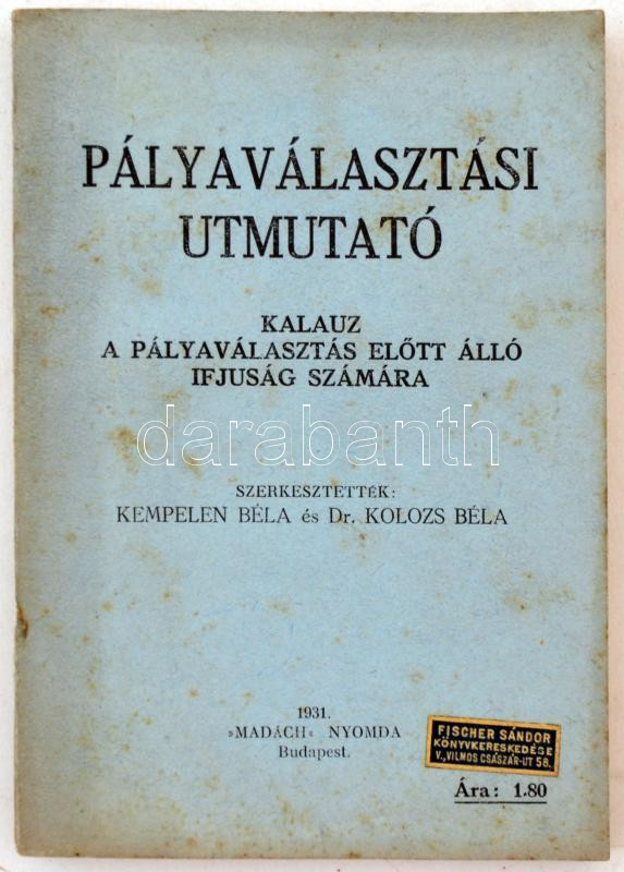 Leírás: 1931 Kempelen Béla, Kolozs Béla (szerk.): Pályaválasztási utmutató. Kalauz a pályaválasztás előtt álló ifjuság számára. Budapest, 1931, "Madách".
