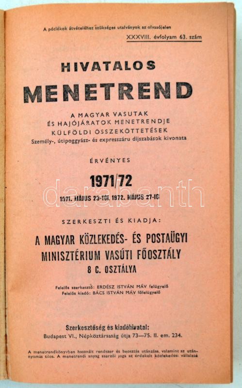 1971-1972 MÁV hivatalos menetrend 1971/1972. Szerk.: Magyar Közlekedés- és Postaügyi Minisztérium Vasúti Főosztálya, Bp. Kicsit kopott papírkötésben, jó állapotban.